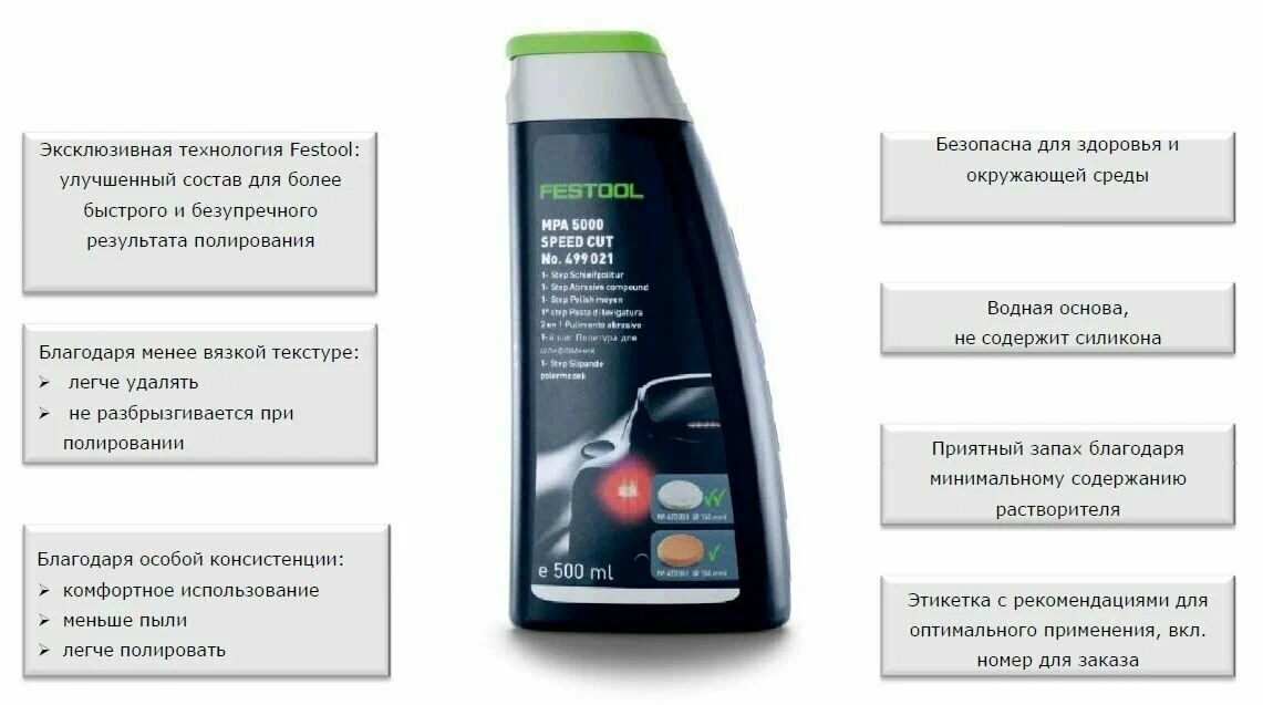 Эксклюзивная технология Festool: улучшенный состав для более быстрого и безупречного результата полирования