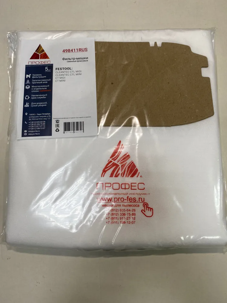 Фильтр-мешки сменные флисовые ПРОФЕС улучшенные. Подходит для пылесосов CTL MIDI/MINI до 2018