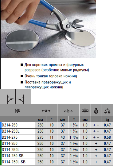 Фигурные ножницы лучше всего подходят для выполнения мелких, близких радиусов в области кромки листа металла. Благодаря своей филигранной форме лезвий эти ножницы могут легко вырезать чрезвычайно узкие фигуры или кривые.