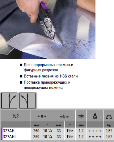 Эти ножницы с полным правом носят свое имя. Так как идеальные ножницы настоящие "универсалы". Их можно использовать для непрерывной резки листового металла (непрерывный разрез), а также резки больших и малых контуров или радиусов (фигурный разрез). При этом не имеет значения, выполняются ли работы с края (обрезка кромки) или посередине листа. Конечно же, идеальные ножницы можно использовать также для простейшей краевой вырубки.