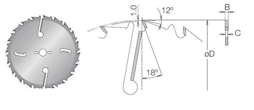 Дисковые пилы MFM с подрезателями для продольного пиления сырой и сухой древесины. Подрезатели, специальные ножи на корпусе пилы, для предотвращения заклинивания корпуса пилы в заготовке, особенно из сырой древесины. Дополнительно подрезатели подчищают торец заготовки, удаляя с него следы от основных зубьев. Прямая форма заточки и большая высота зубьев - для чистого пиления вдоль волокон. Можно использовать как отдельную пилу так и в поставе пил - как центральные пилы.