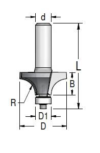 R=3.2мм, D=19.0мм, D1=12.7мм, B=9.5мм, L=48мм