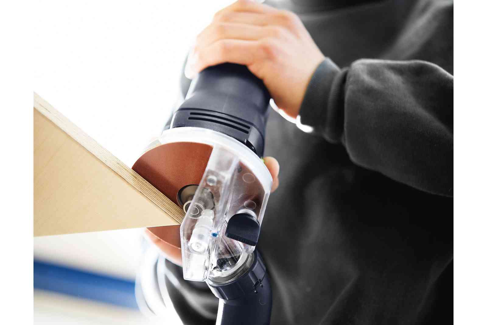 При снятии фасок, скруглении, профилировании и фрезеровании пазов — ровный, чистый рез без сколов с помощью кромочного фрезера OFK 500. Он весит всего 1,4 кг и имеет идеальную центровку, что делает его удобным для работ в вертикальной и горизонтальной плоскостях. Особенностью инструмента является система фрез: все фрезы имеют одинаковый наружный диаметр. Это позволило уменьшить отверстие в опорной пластине фрезера до минимального размера, что предотвращает его опрокидывание при фрезеровании сложных угловых участков.
