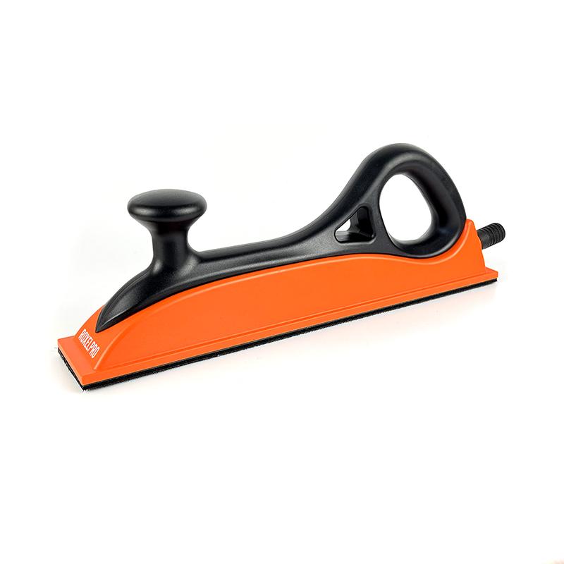 Данный шлифок применяется при ручном шлифовании с использованием шлифовального материала размером 70 x 400мм. Конструктивно состоит из колодки, выполненной в эргономичном дизайне, и идеально ровной шлифовальной подошвы, снабженной липучкой Velcro для крепления шлифовальных полосок. Шлифок производится как в варианте без пылеудаления, так и с различными кофигурациями отверстий и патрубком для пылеудаления. Патрубок для пылеудаления идеально подходит к штатному шлангу (продается отдельно) диаметром 21 мм. Кроме этого шлифок с пылеудалением комплектуется адаптером для шланга с внутренним диаметром 29 мм.