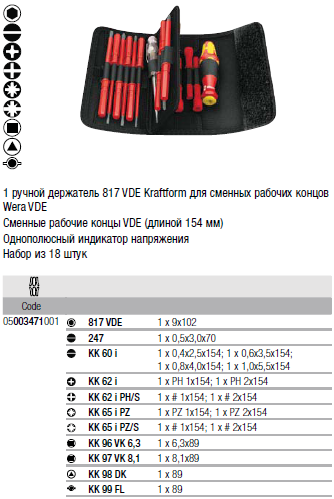 Набор Kraftform Kompakt VDE 60 i/62 i/65 i/18