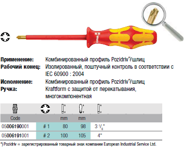 PZ/S VDE Изолированная отвертка для винтов