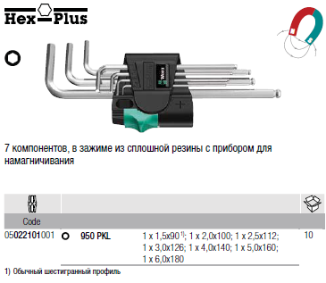 SM Magnet Набор Г-образных ключей, метрических, хромированных
