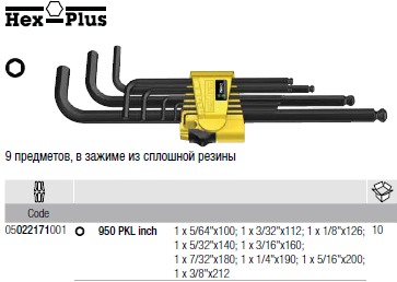 SZ N Набор Г-образных ключей, дюймовых, BlackLaser