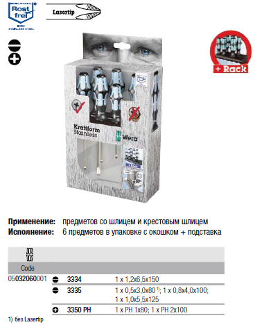Набор отверток, нержавеющая сталь + подставка