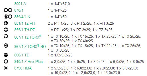 с применением адаптера Wera 870/1 возможно также использование насадок 1/4": 1 шт.