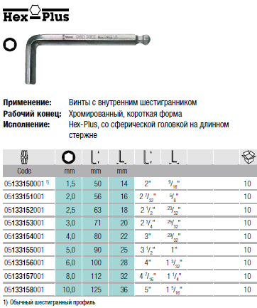 Г-образный ключ, метрический, хромированный