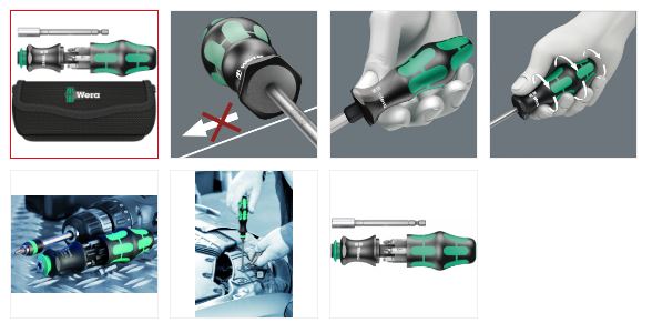 Компактный инструмент Wera с многокомпонентной ручкой Kraftform для высокой скорости работы и особенно эргономичного завинчивания. Встроенный в ручку магазин, в котором можно хранить 6 битов. Выдвижной стержень для работы в тесном пространстве можно утопить в ручке. Его можно извлечь для использования с машинным приводом. Стопорное кольцо и сильный постоянный магнит гарантируют надёжную посадку битов.